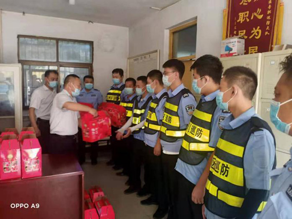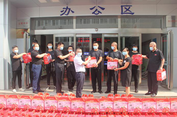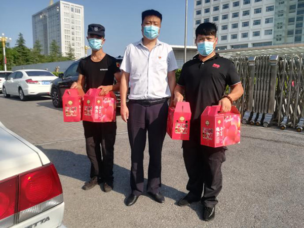 8月9日、10日北關(guān)區(qū)總工會(huì)副主席薛梅、保障部部長(zhǎng)司尚雯來(lái)到安陽(yáng)市洹河保安服務(wù)有限責(zé)任公司,送來(lái)抗洪防疫慰問(wèn)品鮮桃500多箱,向堅(jiān)守崗位、奮戰(zhàn)一線的保安隊(duì)員進(jìn)行慰問(wèn),提醒大家做好防控工作的同時(shí)一定要做好自身防護(hù)。