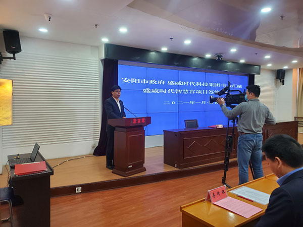 2021年1月13日上午,盛威時代智慧谷項目簽約儀式在市黨政綜合樓2樓第5會議室舉行,市政府、盛威集團、安陽戰(zhàn)新基金、示范區(qū)管委會、經(jīng)開集團等單位的主要領(lǐng)導(dǎo)參加簽約儀式。儀式由市政府秘書長李傳銀主持,常務(wù)副市長陳志偉代表市政府簽約,袁家健市長致辭,齊方董事長代表經(jīng)開集團出席簽約儀式。