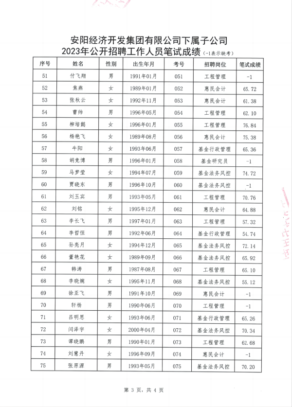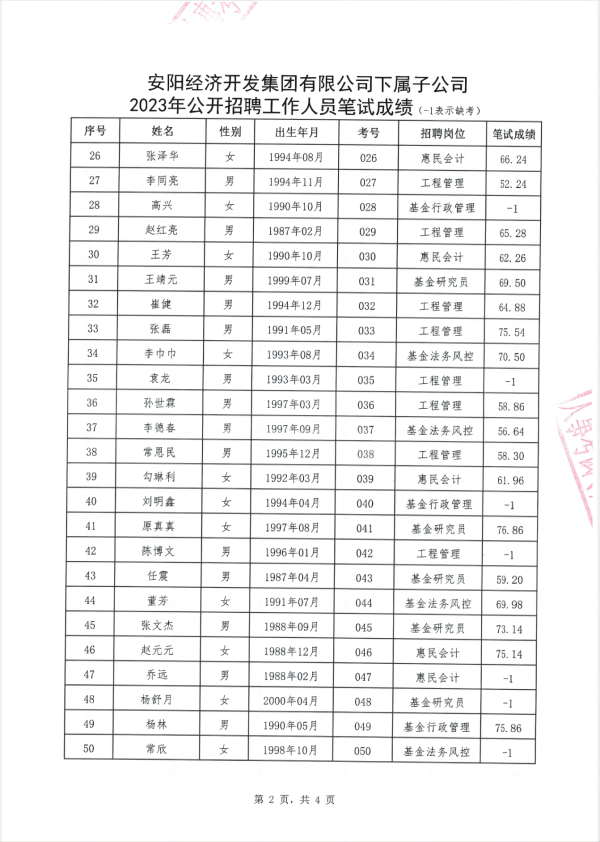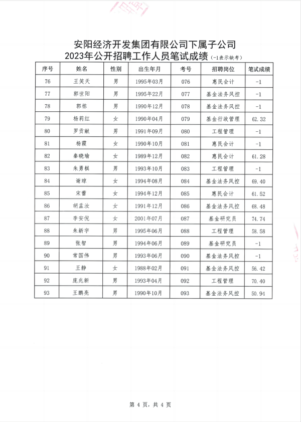 安陽經(jīng)濟(jì)開發(fā)集團(tuán)有限公司下屬子公司2023年公開招聘工作人員筆試成績公示